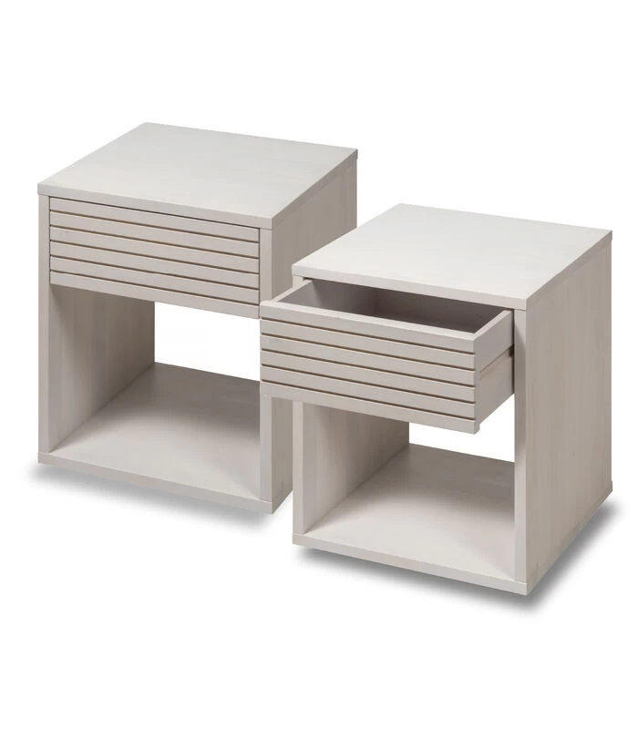 Het nachtkastje, dat de natuurlijke schoonheid van Europees berkenhout benadrukt, combineert de Scandinavische stijl met moderne superieure kwaliteit. Ontworpen met een enkele lade en een onderste plank, heeft dit meubel een houtstrook effect detaillering op het voorpaneel wat een verfijnd stijlaccent geeft. Dit product is gemaakt van natuurlijk massief berkenhout, elk stuk is uniek qua kleur, natuurlijke kenmerken, nerfpatronen en afwerking. Het is dus mogelijk dat u enkele verschillen tussen artikelen van eenzelfde productlijn ziet; dit is onderdeel van de natuurlijke schoonheid van onze producten. Voor het binnenmateriaal van het product kunnen andere soorten hardhout worden gebruikt.