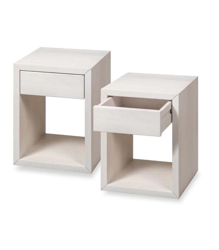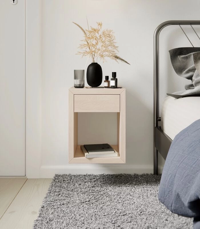 2 X Zwevend Nachtkastje HUGO Met Kleine Lade In Berkenhout