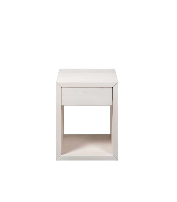 Het nachtkastje is gemaakt van massief berkenhout met een witte afwerking. Met een strakke, minimale stijl toont het de schoonheid van de natuurlijke nerf van het hout. Het heeft een handige lade en een plank voor het opbergen van uw favoriete boeken. Compact en functioneel het kan ook aan de muur worden gemonteerd en gebruikt als zwevende plank / lade niet alleen in de slaapkamer, maar ook rond het huis. Dit product is gemaakt van natuurlijk massief berkenhout, elk stuk is uniek qua kleur, natuurlijke kenmerken, nerfpatronen en afwerking. Het is dus mogelijk dat u enkele verschillen tussen artikelen van eenzelfde productlijn ziet; dit is onderdeel van de natuurlijke schoonheid van onze producten. Voor het binnenmateriaal van het product kunnen andere soorten hardhout worden gebruikt.