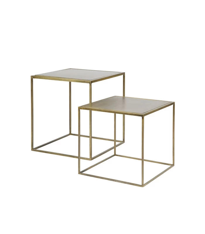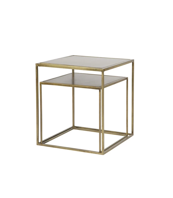 De Set van 2 – Metallic bijzettafel van BePureHome is een ware eyecatcher in jouw interieur. De twee metalen tafels hebben de kleur antique brass. Door het verschil in afmetingen, het hoge model is (hxbxd) 45x40x40 cm en het lage model is (hxbxd) 35x36x36 cm, vormen de tafels een mooi geheel.