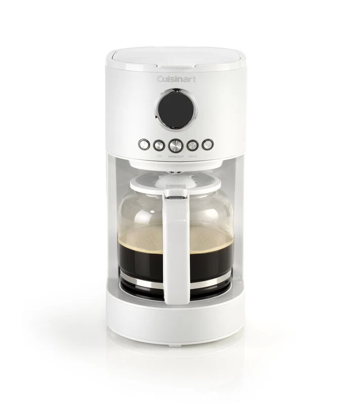 Dit eigentijdse Cuisinart koffiezetapparaat in mat warm witte met gepolijste details, zal prachtig staan in je keuken.