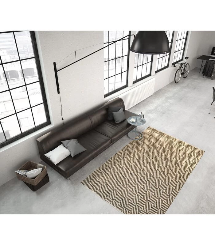 Een eenvoudig fascinerend handgeweven katoenen vloerkleed met een zachte touch. Zijn structuur en zijn mooie bruin–beige kleur zijn een ideale aanvulling op een gezellige woonomgeving gemaakt van natuurlijke materialen. Het prachtig handgeweven vloerkleed straalt een fascinerende touch uit in je hele huis. De ingetogen diamantlook maakt indruk met zijn afwisselende structuren, terwijl de warme kleuren in elke kamer buitengewoon gezellig overkomen. Aangezien dit sieraad er door het vakmanschap iets anders uit kan zien, krijg je bij elk vloerkleed bijna een uniek stuk.