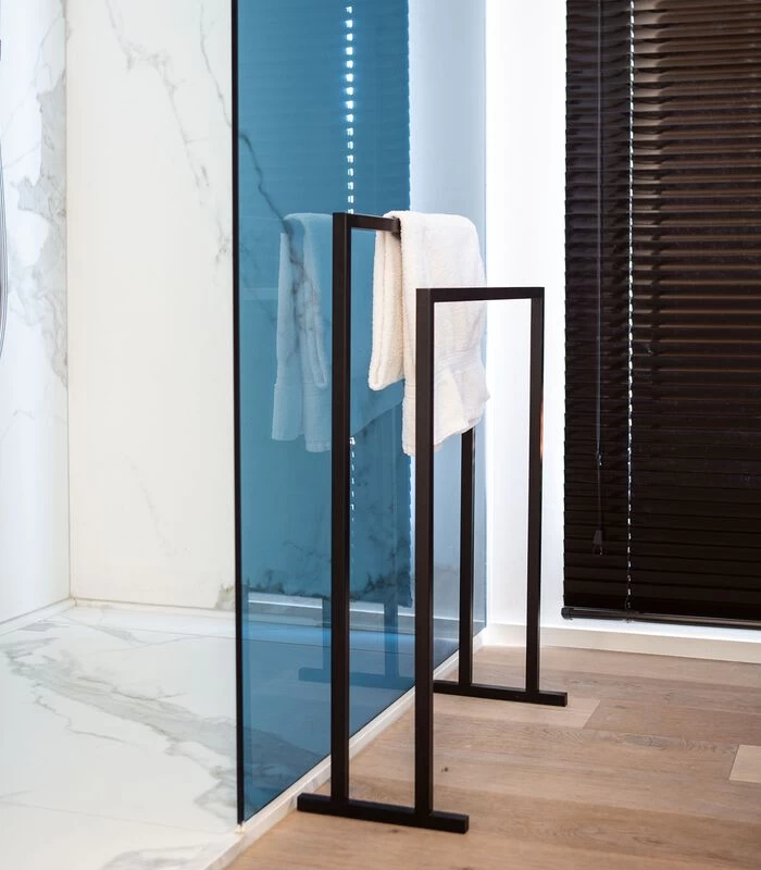 De handdoekhouder Donau valt op door zijn sobere kracht. Met zijn strakke lijnen, uitgevoerd in gepoedercoat zwart metaal past hij perfect in een landelijke of moderne setting. Het mat zwart laat zich prachtig combineren met natuurlijke materialen en aardetinten. De handdoekhouder Donau onderscheidt zich door de kwaliteit van het materiaal en het vakmanschap dat je herkent in de naadloze afwerking.