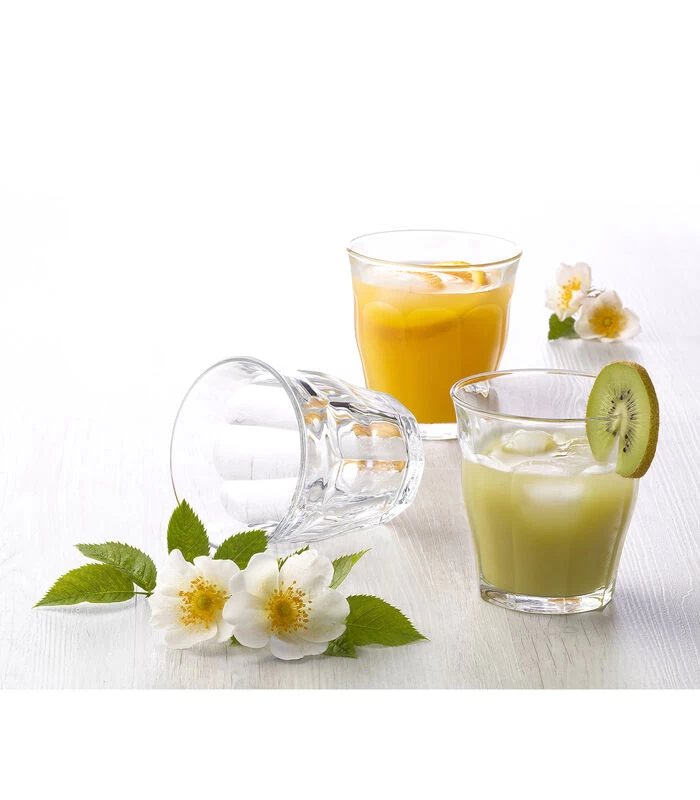 Deze transparante Picardie waterglazen van Duralex zijn bekende gasten in veel huishoudens en in de horeca. De glazen hebben een prachtig stijlvol design en zijn erg multifunctioneel. Deze glazen kun je gebruiken voor het serveren van koude– en warme toepassingen. De glazen zijn namelijk gemaakt van gehard glas en zijn schokbestendig en bestand tegen thermische schommelingen. Daarnaast zijn deze waterglazen stapelbaar en nemen ze ook nog eens weinig ruimte in. Na gebruik kunnen deze ze eenvoudig gereinigd worden in de vaatwasmachine. Deze set bestaat uit 6 transparante waterglazen met een inhoudsmaat van 16 cl.