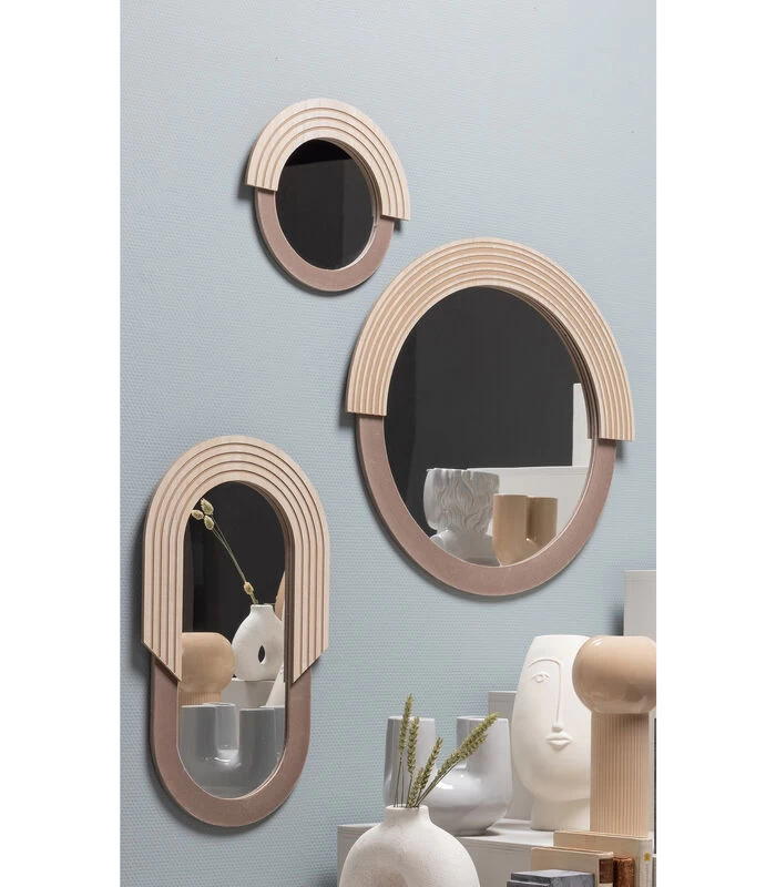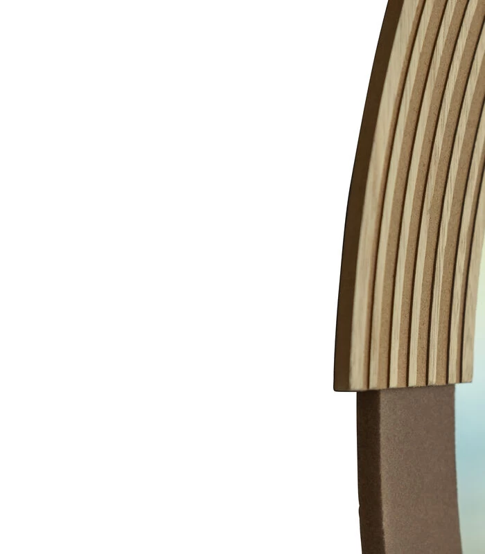 De ronde Hailey spiegel komt uit de collectie van het Nederlandse merk WOOOD. Hailey is een grappige touch in ieder interieur vanwege de speelse combinatie in de rand. De ene helft is van MDF hout met een retro groef. De andere helft is bekleed met fluweelzacht flock poeder met een hoog aaibaarheidsgehalte. Door de aardse tinten straalt de spiegel veel warmte uit, passend in het trendvolle interieurbeeld van nu.