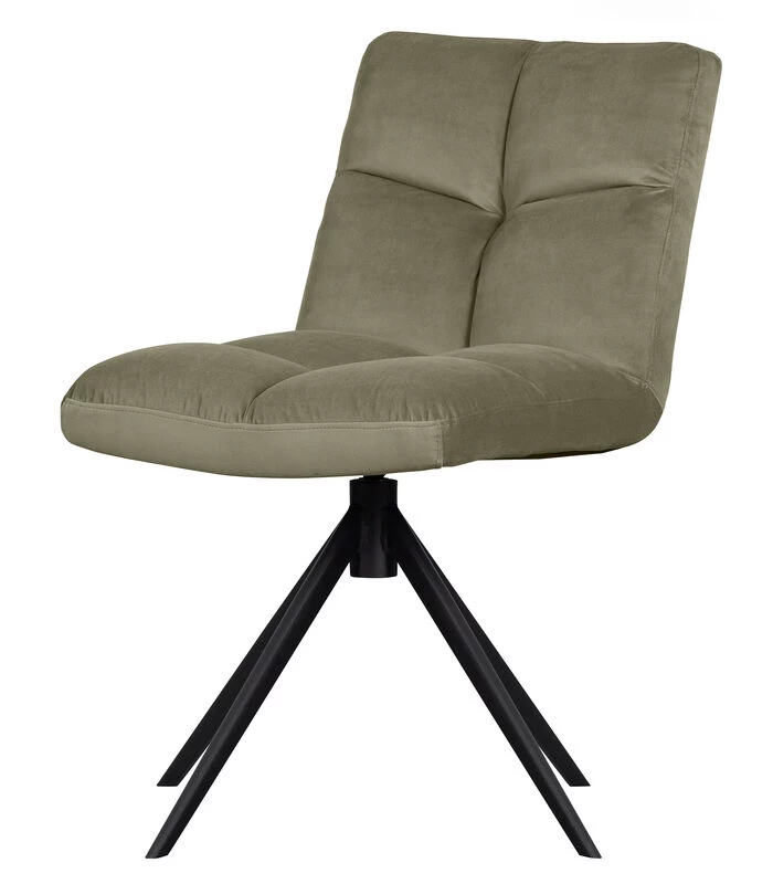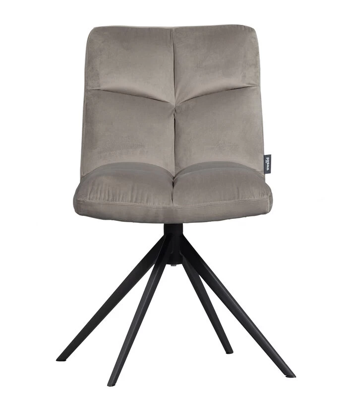 Vinny is bekleed met een matglanzende velvet. De samenstelling van 100% polyester maak de draaifauteuil zeer eenvoudig in onderhoud. De Vinny heeft een zwart, metalen onderstel met vier poten en een soepel draaisysteem. De polyurethaan schuimvulling geeft een hoog zitcomfort en is dus perfect voor eindeloos lang tafelen!