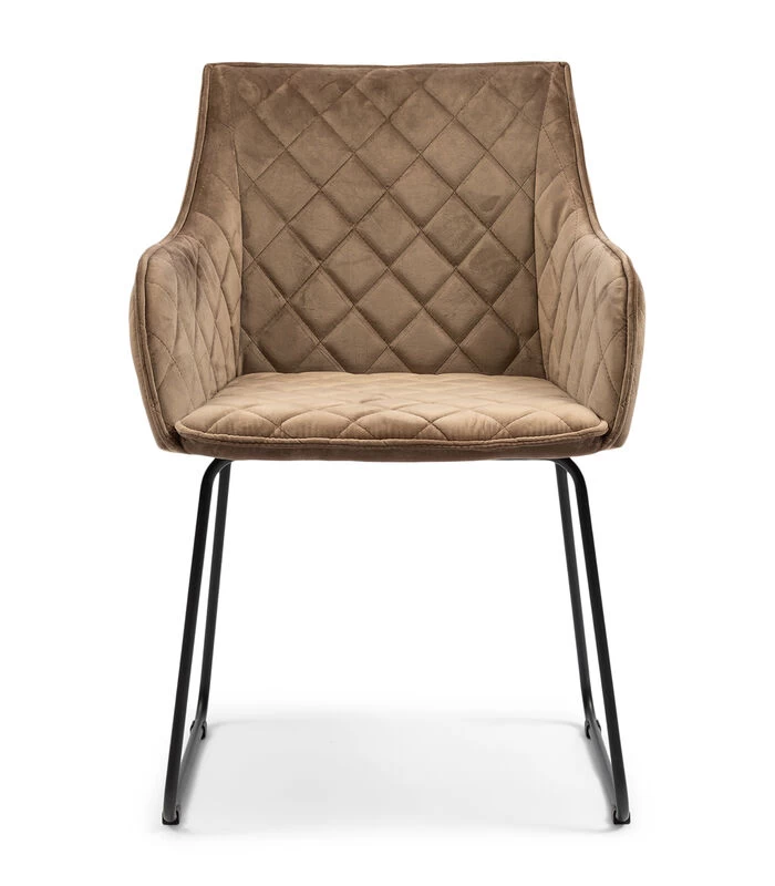 De Frisco Drive–eetkamerstoel is een stoel met een stevige zit en een degelijk onderstel van ijzer. In de stoel is een ruitpatroon gestikt. De eetkamerstoel heeft een klassiek uiterlijk en past hierdoor in ieder interieur. Deze stoel met armleuningen is verkrijgbaar in verschillende kleuren en stofferingen.