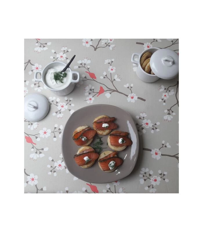 Veeg je tafelkleed na elke maaltijd schoon met een vochtige doek. U kunt ook azijn of bleekmiddel gebruiken om hardnekkige vlekken te verwijderen. In de machine wassen is af en toe toegestaan op 30°C zonder conditioner en zonder centrifugeren. Strijken is verplicht aan de achterkant (katoenkant) of aan de rechterkant met een persdoek of een vochtige theedoek.