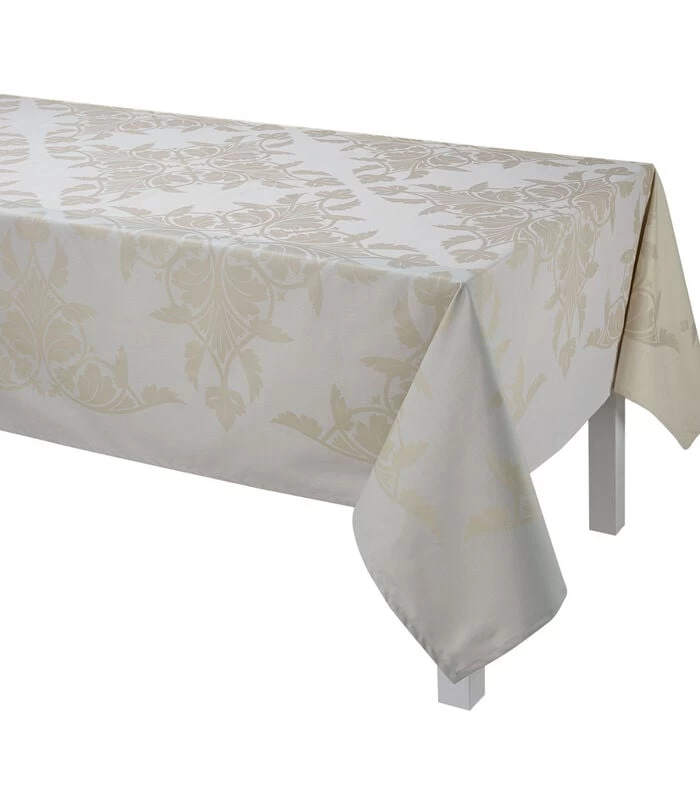 De charme van Sicilië wordt onthuld in Syracuse, een eerbetoon aan de Italiaanse manier van leven. Zachte, op barok geïnspireerde motieven sieren dit tafelkleed met drie strepen in een beige kleurverloop.