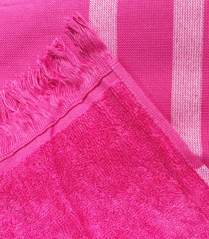Ref /ALANYA FUCHSIA : Handdoek met badstof voering 90 x 160 cm Alanya. Als Europees merk garandeert de fabrikant, Le comptoir de la plage een product van hoge kwaliteit met een lange levensduur en een zorgvuldige afwerking.
