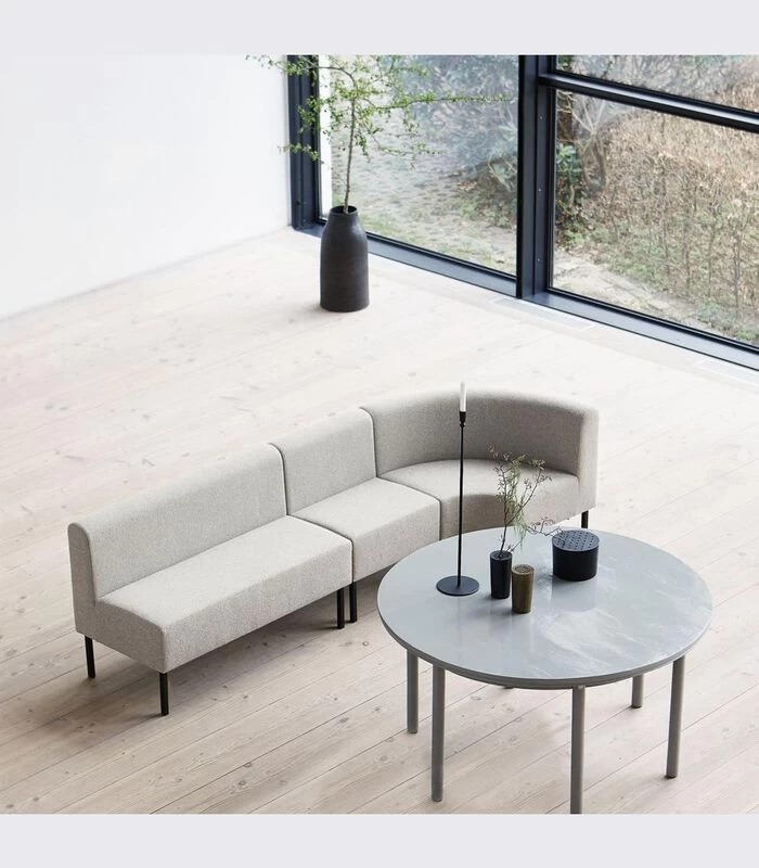De stijl en het comfort van uw woonkamer hangen af van uw bank. Met de House Doctor 1–zitsbank wordt uw woonkamer beslist eigentijdser en uitnodigender. De bekleding is gemaakt van gerecycled materiaal uit productieafval en heeft een luxueuze zachtheid met een rauwe uitstraling, terwijl het minimalistische ontwerp en de lichte kleur de bank een stijl geven die geschikt is voor elk interieur. Breng zachte vormen in uw woonkamer met het gebogen ontwerp en combineer Corner Seater met de andere modules voor een complete modulaire bank. Trends veranderen, maar de modulariteit en charme van dit meubilair is tijdloos.