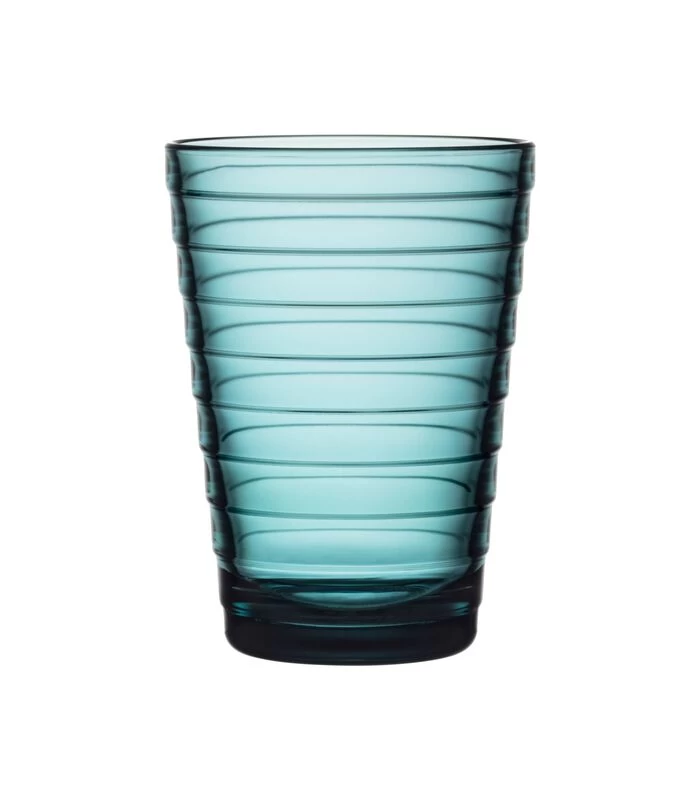 Het geperste glaswerk maakte veel indruk toen designlegende Aino Aalto hem voor de eerste keer introduceerde in 1932. Inmiddels is het glas een tijdloze klassieker in Fins design. Het Finse glaswerk is geïnspireerd op de kringen in het water en is ruimtebesparend, stapelbaar en veelzijdig. Geschikt voor de vaatwasser en ideaal voor dagelijks gebruik. De glasset is nu ook verkrijgbaar in zeeblauw.