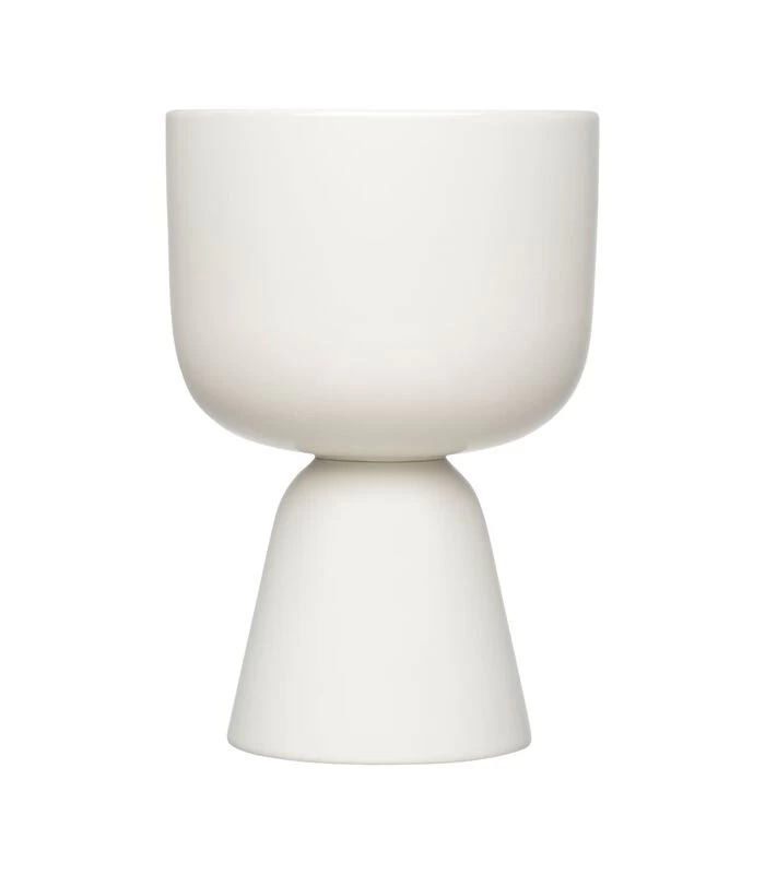 Ontwerper Matti Klenell haalde zijn inspiratie voor Nappula uit een tafel met een onbeholpen vorm en ‘opgezwollen’ poten. Dit herinnerde Klenell aan een klassieke vorm die veelvuldig terugkeert in de werken van meesterontwerpers zoals Oiva Toikka en Kaj Franck. Als klassieker van modern Scandinavisch design laat de kleinere plantenpot planten en bloemen prachtig uitkomen. De gestroomlijnde vorm is een inspiratie voor groene oases. Wit voegt een eenvoudige noot toe aan elk interieur. Opvallend op zichzelf of in een groepje bij elkaar. Een perfect geschenk.