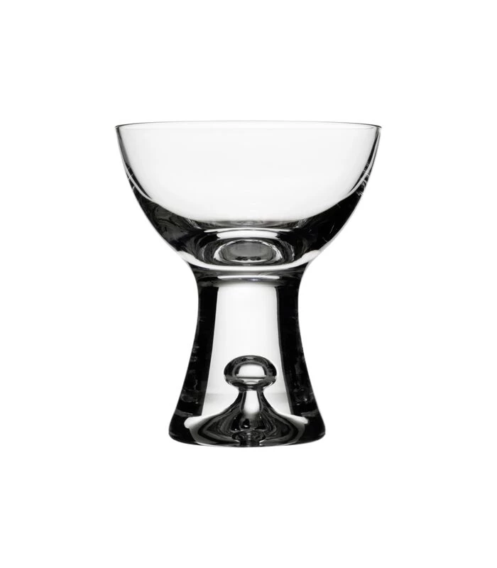 Tapio Wirkkala was een pionier van de moderne Finse industriële kunst. Zijn portfolio was zeer uitgebreid, van meubels en productdesign tot het ontwerp van Finse bankbiljetten. Glas had echter een speciale betekenis voor Wirkkala. Zijn baanbrekende glaskunst wordt over de hele wereld tentoongesteld, van het Museum of Modern Art in New York tot het Victoria & Albert Museum in Londen. Het mondgeblazen Tapio sherryglas, in een set van twee, is veelzijdig en functioneel. Bij het maken van het glas wordt een unieke blaastechniek gebruikt, waarbij met een stokje een luchtbel wordt gemaakt. Het opvallende silhouet wordt gekenmerkt door één zwevende luchtbel in de voet. Een elegant detail op elke tafel. Met de hand afwassen.