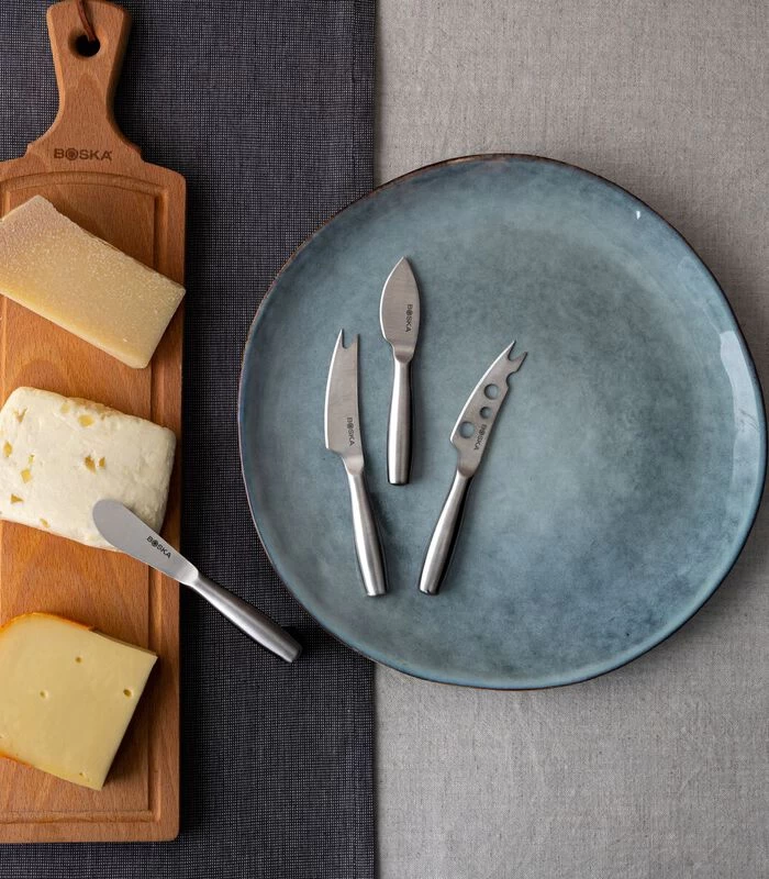 De Kaasmessenset Mini Copenhagen van BOSKA is een perfect cadeau voor de echte kaasliefhebber. De roestvrijstalen messen zijn licht van gewicht en vaatwasserbestendig. Je krijgt er elk type kaas mee klein, dus handig voor bij het serveren van een smaakvol