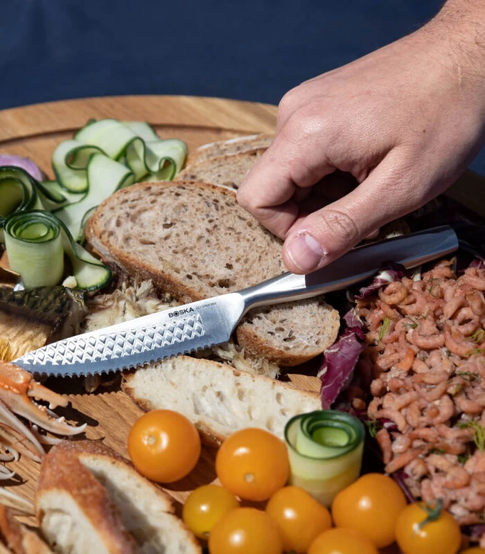 Het BOSKA Kartelmes Monaco+ is uitermate geschikt voor het kleine snijwerk. Handig voor broodjes en groenten met harde korst en zachtere binnenkant, zoals stokbrood en tomaat. Gemaakt van een hoge kwaliteit roestvrijstaal en extra compact voor meer precis