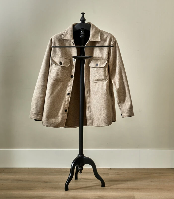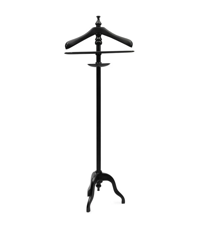 Hang je jasje en broeken kreukvrij aan deze kledingstandaard van aluminium. De in zwart uitgevoerde kledingstandaard bestaat uit een hanger, met daaronder een los rek voor gevouwen artikelen. Dit rekje is in hoogte verstelbaar, net als het sieradenbakje dat daar weer onder hangt.
