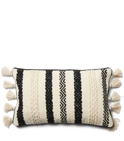 Kussenhoes, Kussensloop 50×50, Kwastjes – Ko Olina – Zwart/ Wit