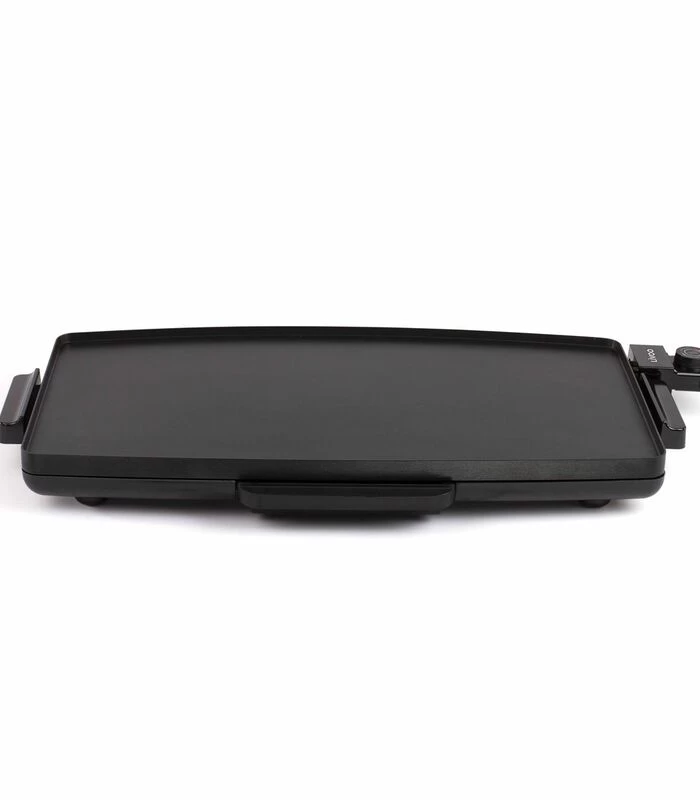 Bakplaat XXL, anti–aanbaklaag gegoten aluminiumplaat voor zware belasting. Groot kookoppervlak 59,5 x 34,5 cm. Vaatwasmachinebestendig. Verwijderbare en regelbare thermostaat. Vetlekbakje. 4 antislipvoeten.