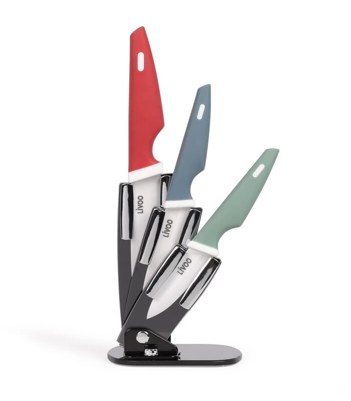 LIVOO Blok Met 3 Keramische Messen Met Houder