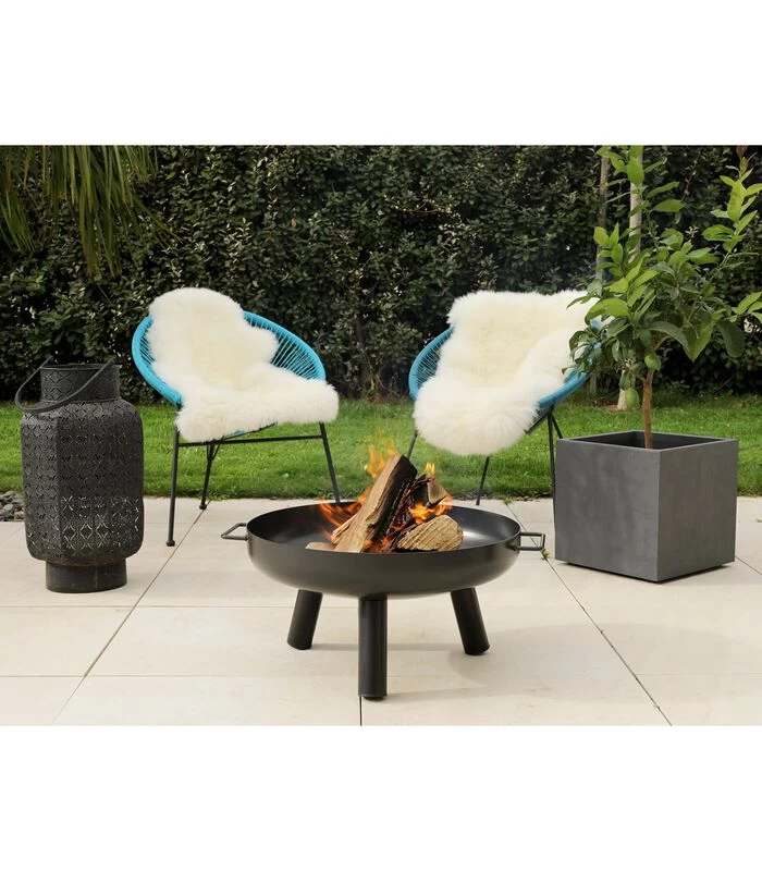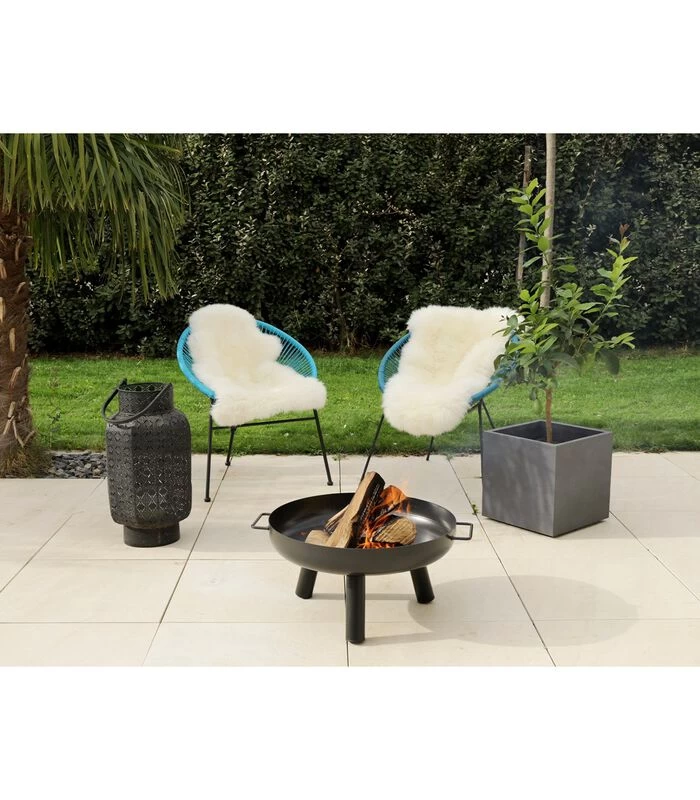 – Zwart gelakte stalen structuur – Gebruik van steenkool en hout – Grote diameter van 60 cm – Hoogte van 30 cm – 3 steunvoeten – Eenvoudig te monteren