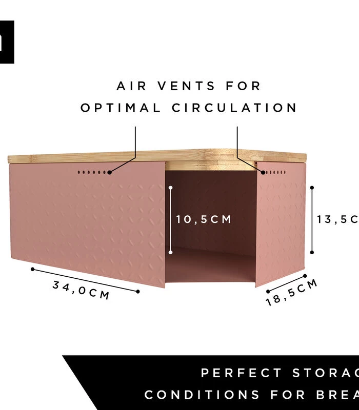 De broodtrommel heeft speciale ventilatiegaten aan drie zijden die zorgen voor een optimale luchtcirculatie. De meegeleverde linnen broodzak houdt gebak & brood langer vers, zonder vocht & schimmel.