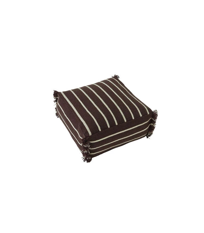Onze Lina Pouf van gerecycled polyester is geschikt voor zowel binnen als buiten. De poef heeft een eenvoudig ontwerp met strepen en franjes aan de zijkanten. De poef is gemaakt van gerecycled polyester en kan zowel binnen als buiten worden gebruikt. Kies uit verschillende kleuren.Stijlnr. L300510Kwaliteit: Polyester, polystyreen kraalvullingAfmetingen: H32 x L62 x B62 cm