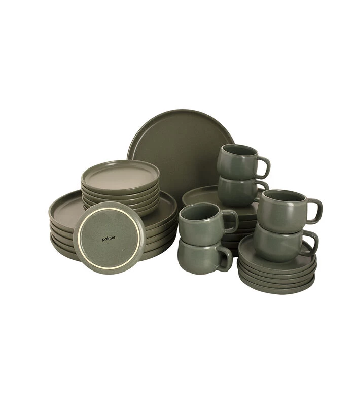 · Product: 6 dinerborden, 6 ontbijtborden, 6 kleine borden, 6 koffiekoppen en 6 koffieschotels
