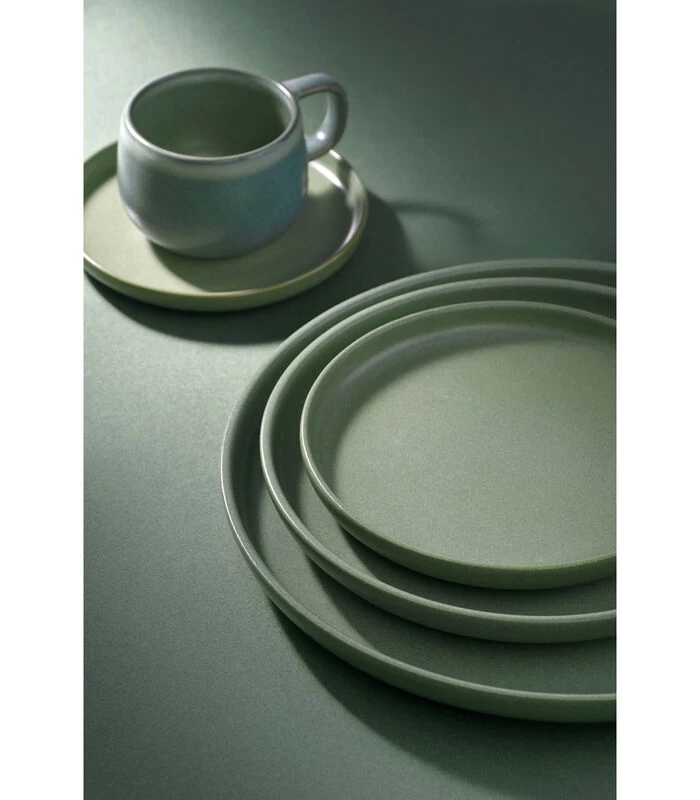 De zachte tinten voeren ons mee naar het strand bij zonsopgang. Wanneer het zachte ochtendlicht het zand raakt, verschijnen er vormen en kleuren die nooit hetzelfde zijn. Introduceer deze breekbare effecten op je eigen eettafel. De borden en schalen uit deze serviesset zijn gemaakt van het materiaal stoneware. Stoneware is oven– en magnetronbestendig tot een temperatuur van 220℃ en kan na gebruik gereinigd worden in de vaatwasmachine. Deze set bestaat uit 6 dinerborden van 28 cm, 6 ontbijtborden van 22 cm, 6 kleinere borden van 17 cm, 6 koffiekoppen met een inhoudsmaat van 27,5 cl en 6 koffieschotels met een diameter van 14,5 cm.