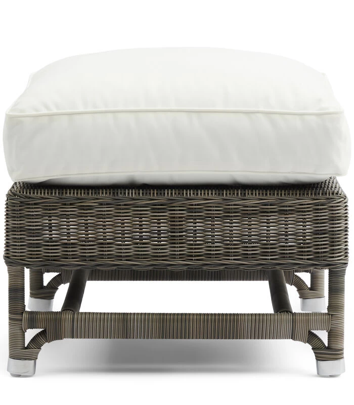 Zitplaats, voetenbankje. Hoeveel functies kan een meubel hebben? Deze van speciaal outdoor riet staat mooi bij de andere tuinmeubelen.