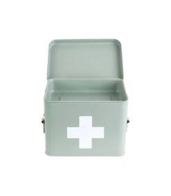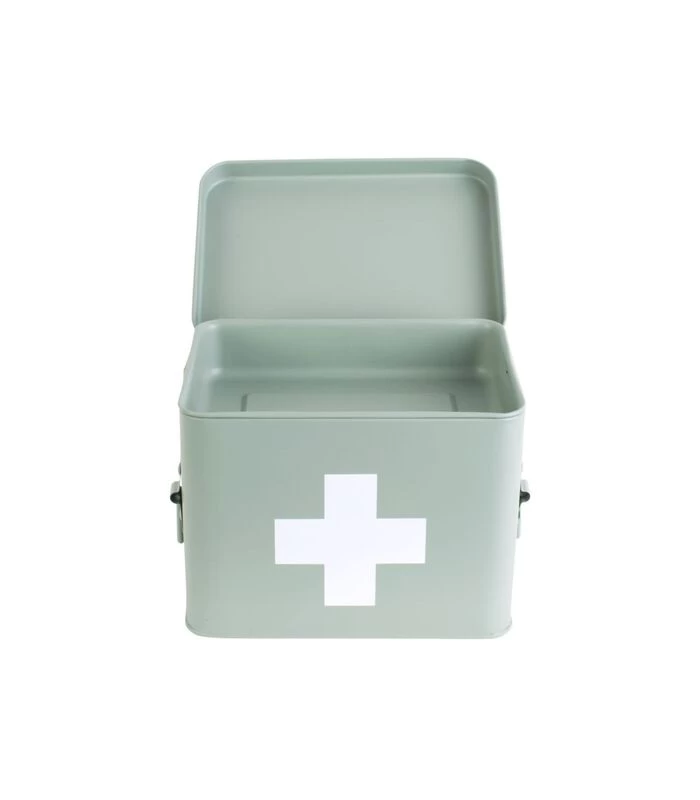 PRESENT TIME Medicijnkist – Medium – Metaal Mat Grijs/Groen – 21,5×15,5x16cm
