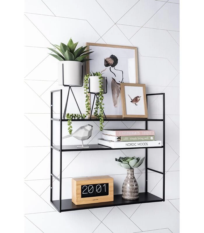 Tover die kale muur om, of hang hem handig in de keuken of badkamer om je kleine spullen in op te bergen. Door de matte finish ziet het rekje er strak en trendy uit. Je kiest zelf op welke hoogte je de plankjes ophangt en je kunt kiezen uit drie verschillende trendkleuren.