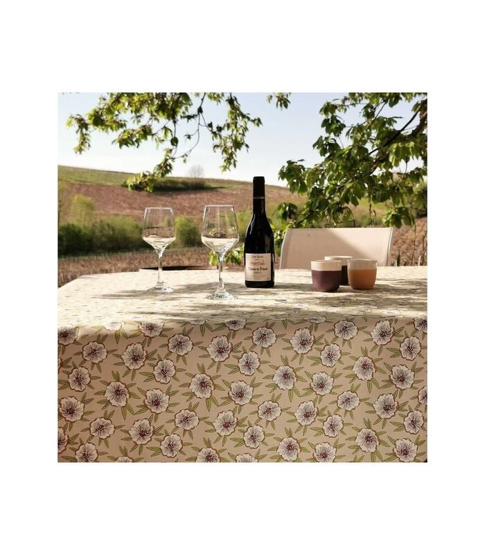Veeg schoon Tafelkleed Fleur de Soleil is gemaakt van hoogwaardig gecoat katoen. Ze zijn bestand tegen de vlekken van het hele gezin (wijn, chocolade, koffie, tomatensaus, olie…)
