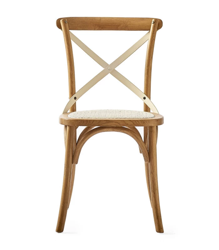 Eikenhouten stoel met gekruiste rugleuning en geweven zitting, voor extra comfort is er een bijpassend zitkussen verkrijgbaar.