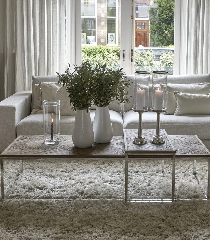 Dit is een bijzondere salontafel. De Bushwick Coffee Table bestaat namelijk uit twee delen: een deel van 170 cm lang en een kort deel dat je over de tafel heen kunt plaatsen, maar ook los kunt gebruiken. Speel met de mogelijkheden! De tafel is gemaakt van ‘Old Elm’ in combinatie met roestvrij staal.