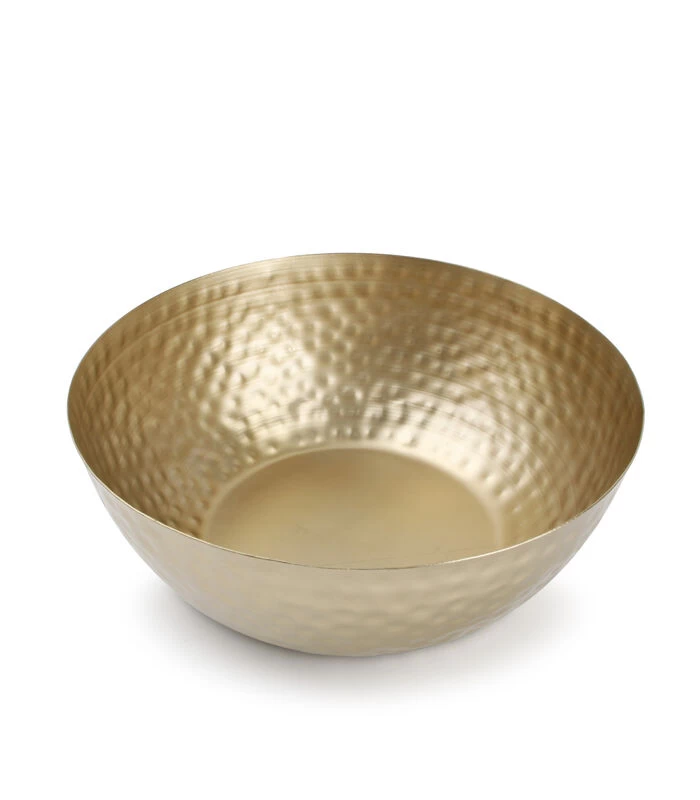 De Gala dienbladen en sierkommen zijn echte blikvangers! De metalen dienbladen zijn voorzien van een opstaande rand, een mooie matGouden kleur en een licht gehamerde structuur. De sierkommen hebben dezelfde elegante en karakteristieke gehamerde structuur als de schalen. Ze passen in bijna elk interieur en lenen zich perfect tot het decoreren van uw favoriete hoek in huis. Gebruik het dienblad voor het serveren van drankjes of een heerlijk ontbijt, of gebruik het als een decoratief item met kaarsen of ander decoratiemateriaal.
