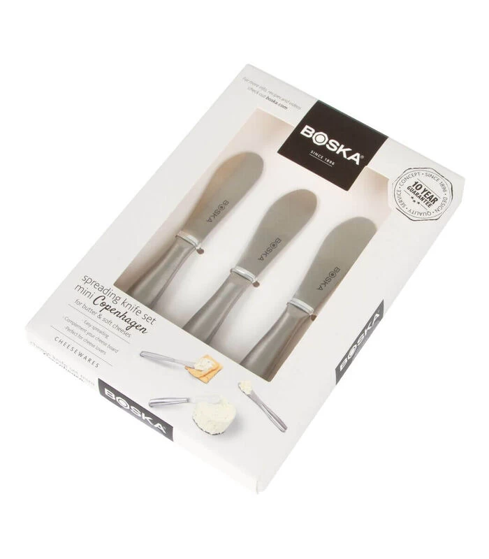 Van verse kaas en tapenade tot pesto en kruidenboter; met het Smeermessenset Copenhagen van BOSKA smeer je het in stijl. Deze vier roestvrijstalen mesjes zijn licht van gewicht en zijn perfect voor bij de borrel of als je een feest geeft.