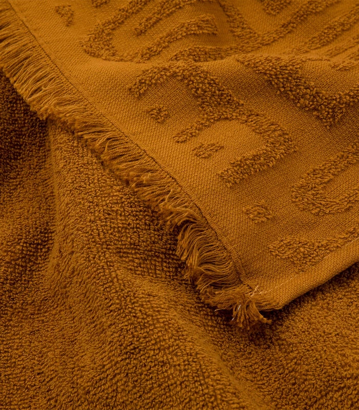 Strandlaken, effen, gebeeldhouwd met franjes.