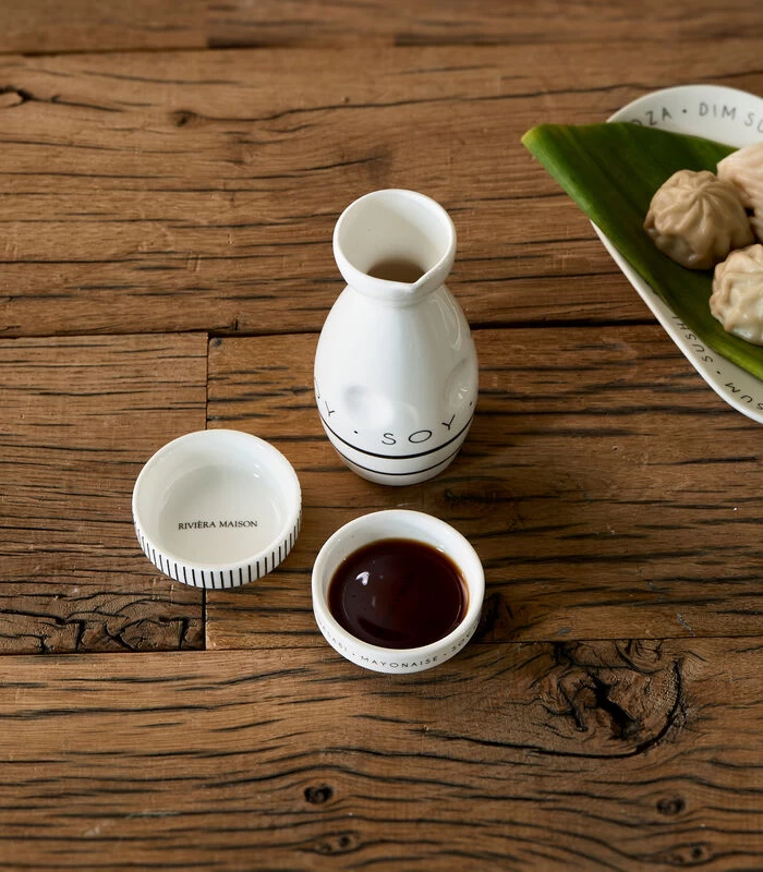 Houd je van sushi? Dan ben je er met de driedelige RM Loves Sushi Soy set in cadeauverpakking helemaal klaar voor. Een flesje voor de sojasaus en twee schaaltjes waar je de verschillende sushihapjes in serveert. Mooi gedecoreerd met onder meer ingrediënten die hiervoor worden gebruikt.