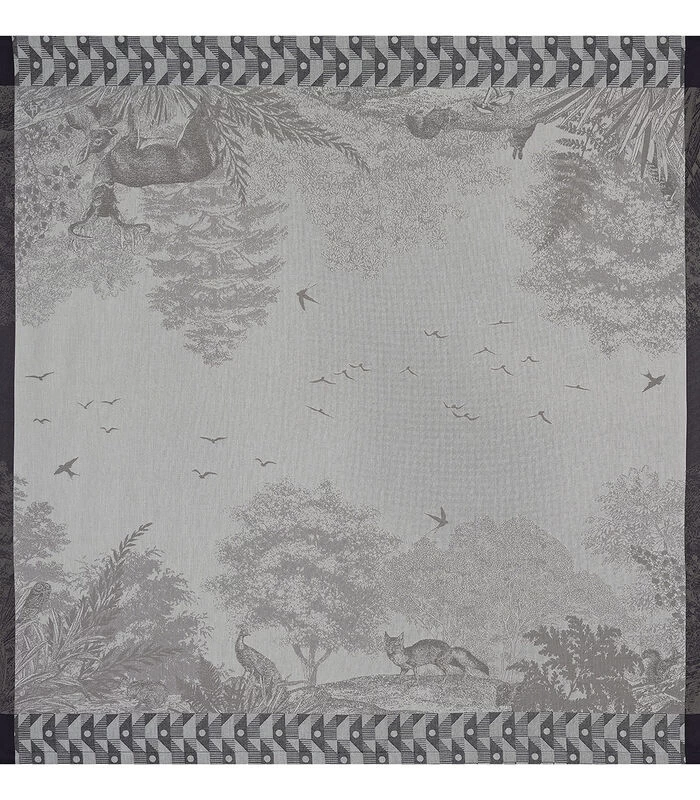 Poëzie en charme vormen dit tafelkleed van 100% katoen. Een uitnodiging voor een dromerige reis om de dieren van het woud, de bomen en hun majesteit te ontmoeten.