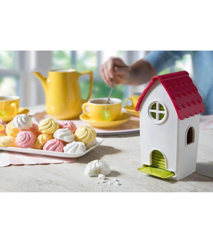 Met de Tea House van Ototo kun je zelf het theehuis naar binnen halen. Deze leuke thee organizer bewaart al je favoriete theezakjes op één plek zodat jij gemakkelijk een zakje kunt pakken. Dus zet je waterkoker aan, haal een zakje uit de voordeur van het huisje en geniet van een overheerlijke kop thee. Het is een leuke en slimme manier om je theecollectie netjes te houden!
