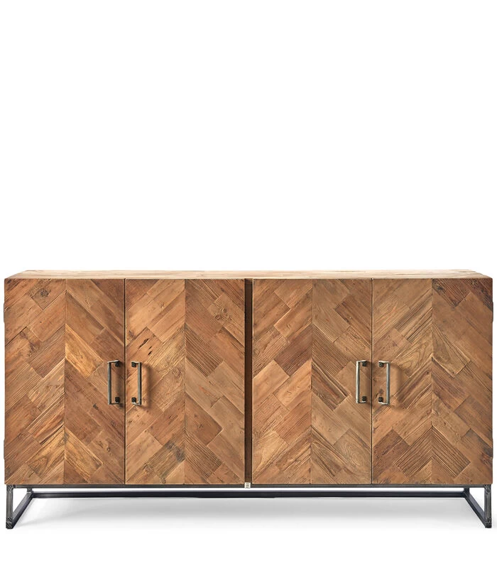 Een robuust en royaal dressoir, dat is de ‘Tribeca’. Deze kast met vier deuren met een breedte van 160 centimeter en een hoogte 85 centimeter biedt veel ruimte voor diverse zaken die onmisbaar zijn in de living. Zijn stoere uiterlijk bestaat uit een opvallende structuur van latten, allen van gerecycled hout. Duurzaam was nog nooit zo stijlvol!