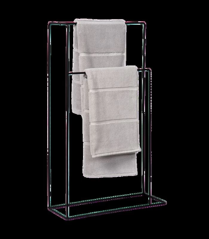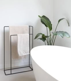 Met het handdoekkenrek Tulia heeft geen enkele sloddervos nog een geldig excuus! Het minimalistische design in zwart gepoedercoat metaal past in elke badkamer. Het strakke ontwerp geeft elke industriële, landelijk moderne badkamer of zelfs dressing iets extra’s. Verloren handdoeken en kleren op de vloer? No more! Zoekwoorden : handdoekrek,handdoekhouder,vrijstaand,2 armig