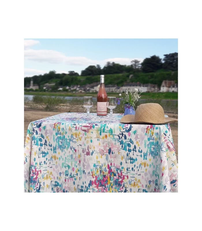 Veeg schoon Tafelkleed Fleur de Soleil is gemaakt van hoogwaardig gecoat katoen. Ze zijn bestand tegen de vlekken van het hele gezin (wijn, chocolade, koffie, tomatensaus, olie…)
