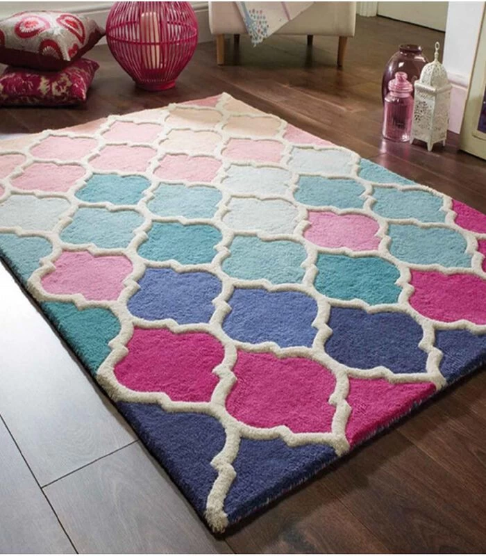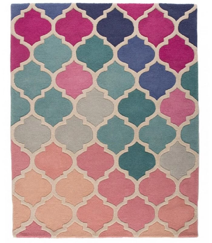 Een klassiek geometrisch patroon in de kleuren blauw en roze. Dit prachtige vloerkleed vormt de basis voor moderne verfijning in een woon– of slaapkamer. Dit vloerkleed is gemaakt van 100% wol met handgesneden effect en biedt u weelderige warmte, verbazingwekkende textuur en uitzonderlijke zachtheid. Onze mat is verkrijgbaar in 80 x 150 cm, 120 x 170 cm en 160 x 230 cm en biedt een grote duurzaamheid.