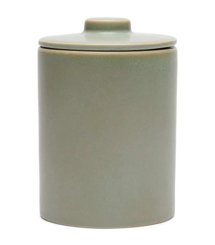 In een prachtig vergrijsde groene kleur is dit de RM Marseille voorraadpot maat S. De pot is gemaakt van porselein en heeft een strakke vormgeving. De ronde deksel heeft als extra een siliconen ring, waardoor de pot extra goed en luchtdicht sluit. Verkrijgbaar in verschillende maten en uitvoeringen.