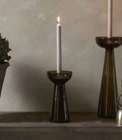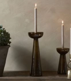 Kaarshouder Glas, Hoge Kandelaar – Amber Stone – Bruin – Maat M