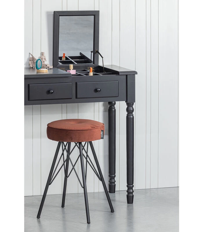Bella is een opvallende, moderne en speelse kruk uit de collectie van het Nederlandse merk WOOOD. De top van de Bella kruk is bekleed met een mooie velvet stof (100% polyester) in de kleur brick red. Het onderstel is gemaakt van metaal met een zwarte afwerking. Door deze combinatie van kleuren en materialen heeft de kruk een speelse, vriendelijke en moderne uitstraling.