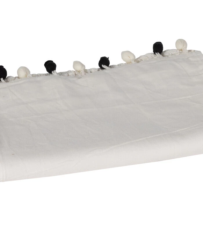 Deze luxe hemeldoek is een romantische toevoeging van het Wendy hemelbed. Deze off white katoenen doek is eenvoudig te bevestigen aan het metalen bedframe. Wanneer bevestigd hangt het doek 4 cm boven de grond. Het Wendy hemeldoek is aan beide kopse kanten afgewerkt met een fraaie sierrand, op deze sierrand zijn zwarte en witte, pluizige balletjes bevestigd. Deze sierrand heeft een hoogte van 6 cm.