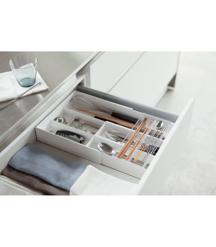 Yamazaki Extendable Cutlery Tray With Slide – Tower – White
